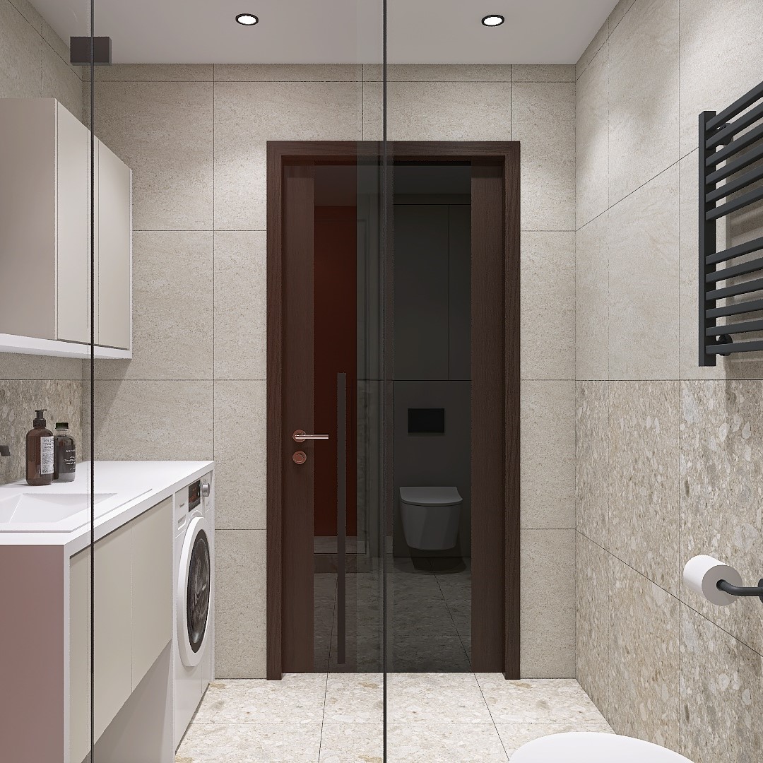 Минималистичная мебель, теплый свет и декор завершили образ. Готовый санузел стал идеальным сочетанием спокойствия и вдохновения - местом, где начинается и заканчивается день в гармонии.
