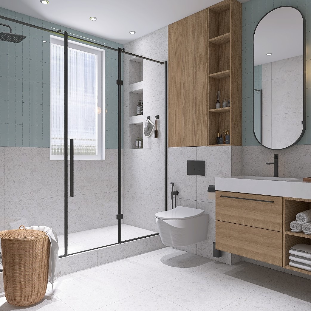 Этот санузел создан для пары, прожившей вместе много лет. Они мечтали о пространстве, дышащем уютом и комфортом.